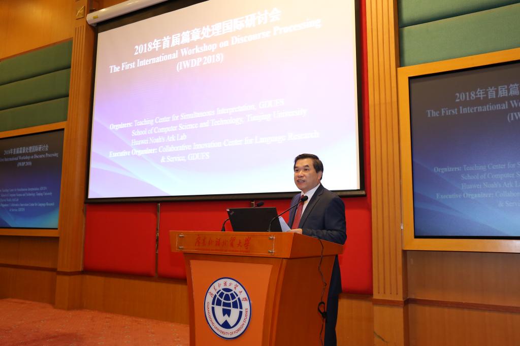 10月23日至24日,首届“篇章处理国际研讨会”(IWDP 2018)在我校举行。本次研讨会由我校国家级同声传译实验教学中心、苏州大学计算机科学与技术学院、华为技术有限公司诺亚方舟实验室共同主办,我校外语研究与语言服务协同创新中心承办。研讨会以“汉英双语篇章结构分析与处理”为主题,吸引了来自英国爱丁堡大学、美国布兰迪斯大学、德国人工智能研究中心、香港城市大学、北京大学、天津大学、苏州大学、华为诺亚方舟实验室和腾讯人工智能实验室等多所全球知名高校和科研机构的数十位计算语言学、自然语言处理和人工智能研究的专家学者相聚羊城,围绕会议主题开展广泛而深入的学术研讨与交流。