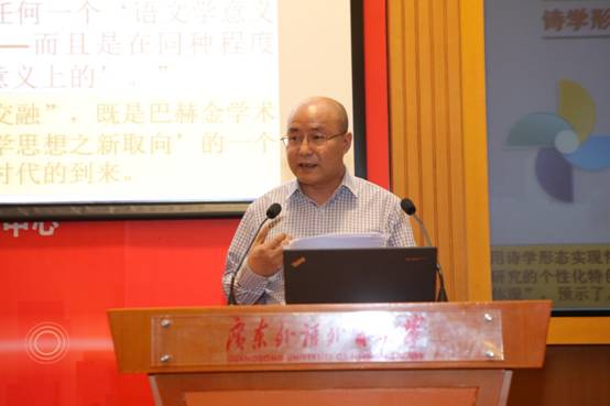 北京大学凌建侯教授作了题为《诗学的形态与哲学的诉求——巴赫金小说理论的学术功绩》的主旨发言。凌教授通过对《巴赫金全集》在中国多个版本的翻译与接受情况、巴赫金在西方学术界影响力的分析来切入巴赫金的学术功绩,并通过系统地研究概括指出,巴赫金通过诗学的形态来表达一种哲学的诉求,其学术遗产的最大魅力在于通过长篇小说研究最终完成了对独白主义与反独白主义思维体系的建构,并预见了人文研究跨学科、跨文化时代的来临。