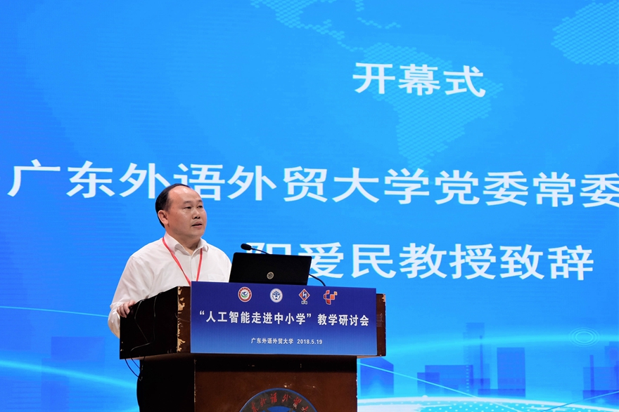 我校副校长阳爱民在致辞中介绍,广外作为一所国际化特色鲜明的省属重点大学的基本情况,除了具有外语学科的优势,这几年在人工智能、网络空间安全等领域也取得了长足的发展。此外,在基础教育领域,广外也积极利用自身优势,走出了一条集团化的基础教育发展之路,建成了广东省内首屈一指的基础教育集团化办学品牌。他指出近年信息技术与教育的结合已成为不可阻挡的潮流与趋势。也是国家对教育发展的要求。以习近平新时代中国特色社会主义思想和党的十九大精神为指导,推进教育信息化是每个教育者应该落实的重要工作。