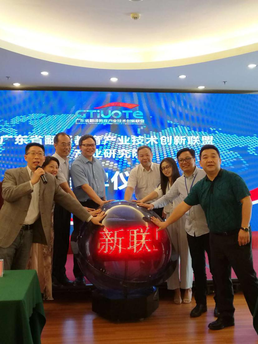 5月12日下午,广东省首届“AI+”产教融合国际化人才培养圆桌论坛暨广东省翻译教育产业技术创新联盟(以下简称广盟)产业研究院成立仪式在广州鸣泉居会议中心举行。广东省科技厅产学研结合处调研员梁宇宁、我校副校长刘建达、广东省高职院校公共英语课程教学指导委员会主任吴寒在会上致辞。我校翻译学院院长赵军峰受聘为广东省翻译教育产业技术创新联盟理事长。来自省内二十多所高校代表和国际多家顶尖教育技术公司的负责人参加会议。成立仪式由澳门大学翻译传译认知研究中心主任李德凤主持。