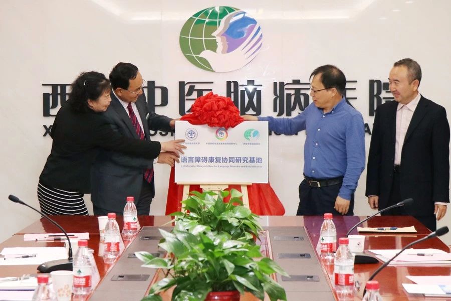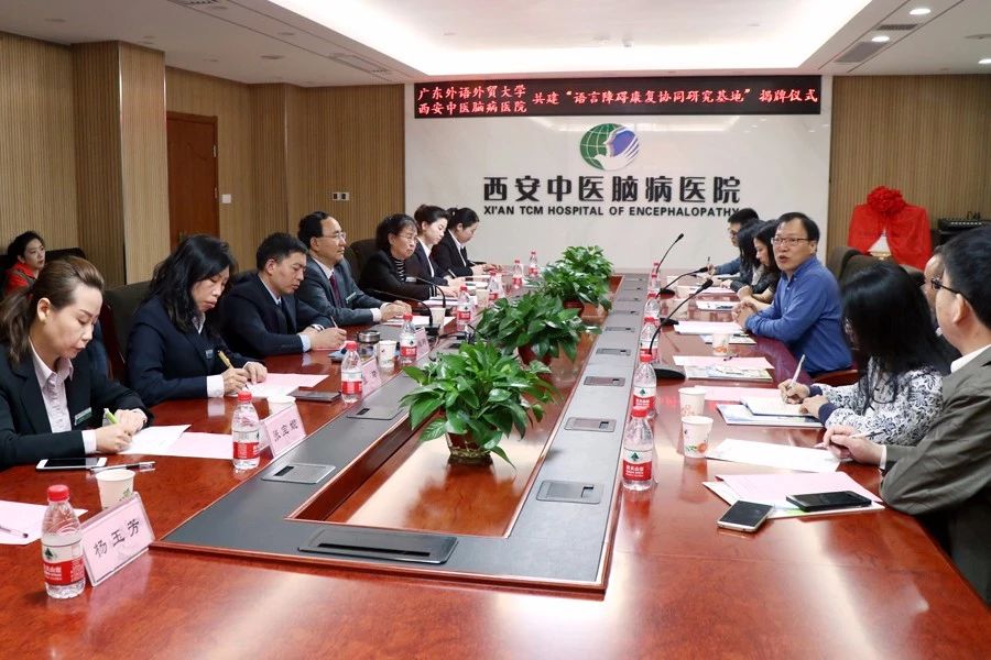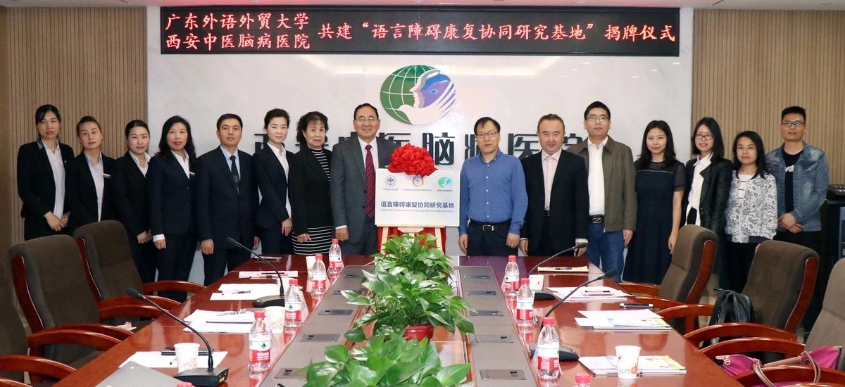 3月30日上午,由广东外语外贸大学外语研究与语言服务协同创新中心(以下简称为“中心”)、西安中医脑病医院共建“语言障碍康复协同研究基地”的揭牌仪式在西安中医脑病医院隆重举行。