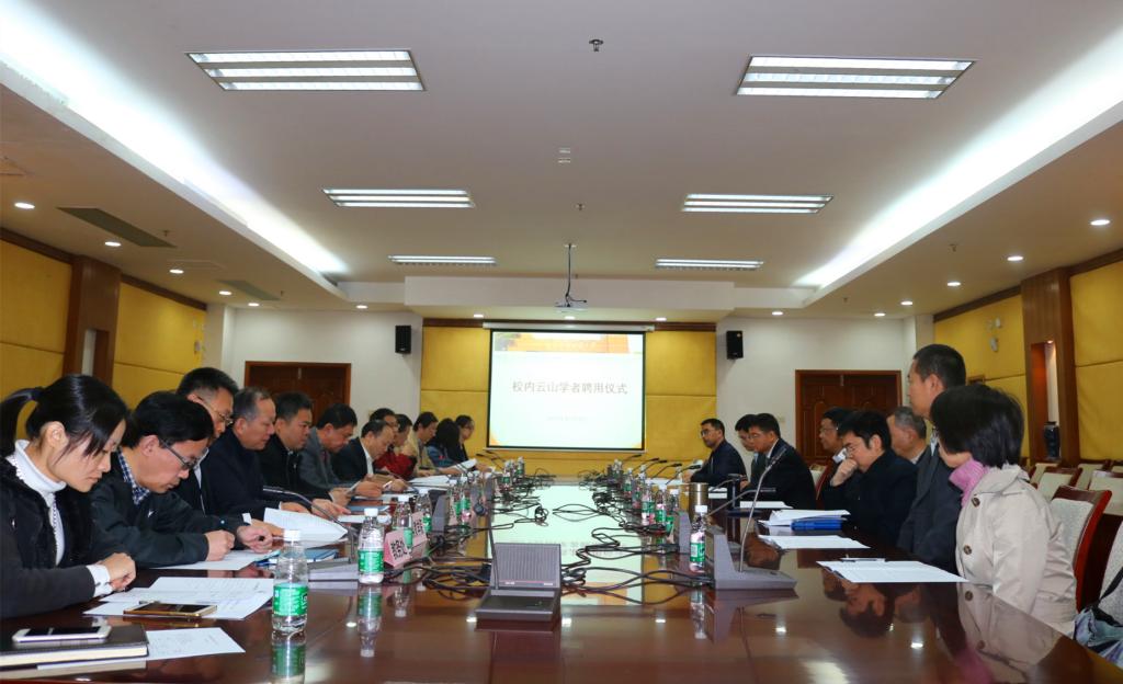 12月26日上午,第二批校内教师受聘“云山学者”聘用仪式在南校区行政楼103会议室举行。我校党委书记、校长隋广军为10名教师颁发“云山学者”聘书,副校长阳爱民,发展规划处、教务处、科研处、人事处及相关二级单位负责人出席本次仪式。仪式由阳爱民主持。