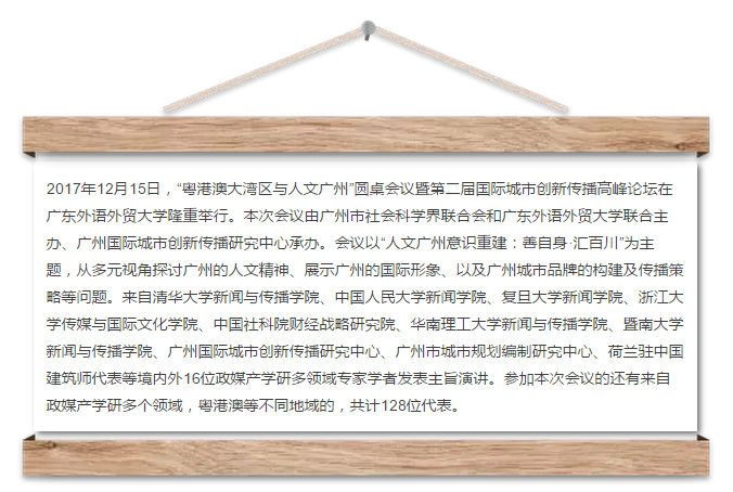 在大会的主旨发言环节,与会嘉宾共同围绕粤港澳大湾区品牌形象建构与传播策略、城市品牌国际传播效果评估体系构建、近代广州城市文化发展与人文广州建设、粤港澳大湾区建设中的广州城市形象区域协同发展战略与对策,以及其他和粤港澳大湾区核心城市与人文广州相关的议题进行了精彩纷呈的分享与探讨。