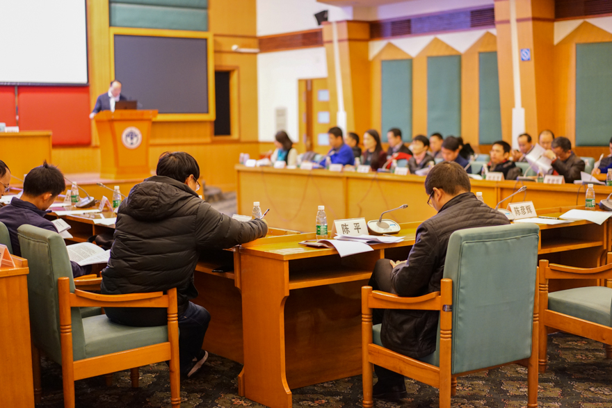 阳爱民总结了2016年立项在研团队建设情况,肯定了13个团队取得的成果。各团队注重过程管理,搭建了学术交流平台。团队建设期一年,严修鸿带头的团队就获得国家级重大项目立项;严修鸿以及团队成员杨慧君编著的中国语言资源保护工程标志性成果在京发布;区域与国别研究特色进一步凸显,区域与国别研究团队印尼与华商研究创新团队2017年12月在京发布经济蓝皮书《印度尼西亚经济发展报告(2017)》;中-拉研究团队于2017年5月12日发布《2016年拉丁美洲蓝皮书》,彰显了我校全国一流外语学科与华南地区外经贸和国际战略重要研究基地的特色优势与交叉融合等。阳爱民同时从创新团队科学目标的凝练、和谐的人才层次与梯队建设、创新平台的建设及团队文化建设等方面提出对团队未来建设的探讨。他指出,一个良好的团队需要有良好的学术氛围建设和健全的规章制度建设,包括严格的分工合作制度、公正的奖惩制度、平等交流的制度及良好的沟通机制等。