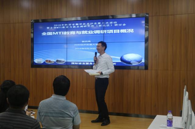 9月24日,全国翻译专业学位研究生(MTI)教育与就业调研(西北区)会议暨陕西省翻译技术沙龙在西安外国语大学成功举行。会议由西安外国语大学高级翻译学院、西安外国语大学丝绸之路语言服务协同创新中心主办,对外经济贸易大学国际语言服务与管理研究所协办,Atril Solutions和上海佑译信息科技有限公司(UTH国际)为会议支持单位。会议主题聚焦翻译硕士MTI教育与就业调研、翻译实践教学技术以及翻译技术课程建设。来自陕西省、山西省、甘肃省、宁夏回族自治区以及新疆维吾尔自治区等MTI高校师生、北京、天津、上海等语言服务企业代表、中国外文局CATTI考评中心代表共同参与了此次会议。广外协同创新中心副主任葛诗利教授和云山学者王华树博士应邀参加了此次会议。
