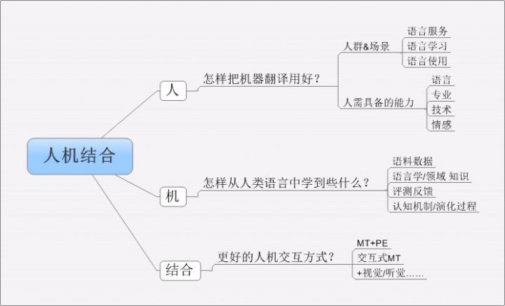 百度何中军:“我们通常所说的人机结合,是在CAT的层面,及机器和人的交界(interface)的地方。但是机器翻译的(在质量坐标轴)位置是不断右移的,在普通人已经不及机器翻译的场景下,没有理由不用机器翻译”。