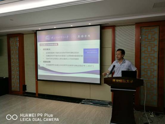 全国翻译专业硕士学位(MTI)教育与就业江苏区调研会议于6月26日在南京师范大学顺利举行,广东省外语研究与语言服务协同创新中心副主任葛诗利教授应邀参加并作发言。与会人员还包括来自广东省、江苏省、北京市、上海市、安徽省的负责高校翻译专业硕士(MTI)教学的院长和主任、翻译需求企业和翻译服务企业代表共计50多人,以及全国翻译专业学位研究生教育与就业调查项目团队的代表和项目支持单位的代表。会议主题为实施江苏省MTI教育与就业状况的调研工作。